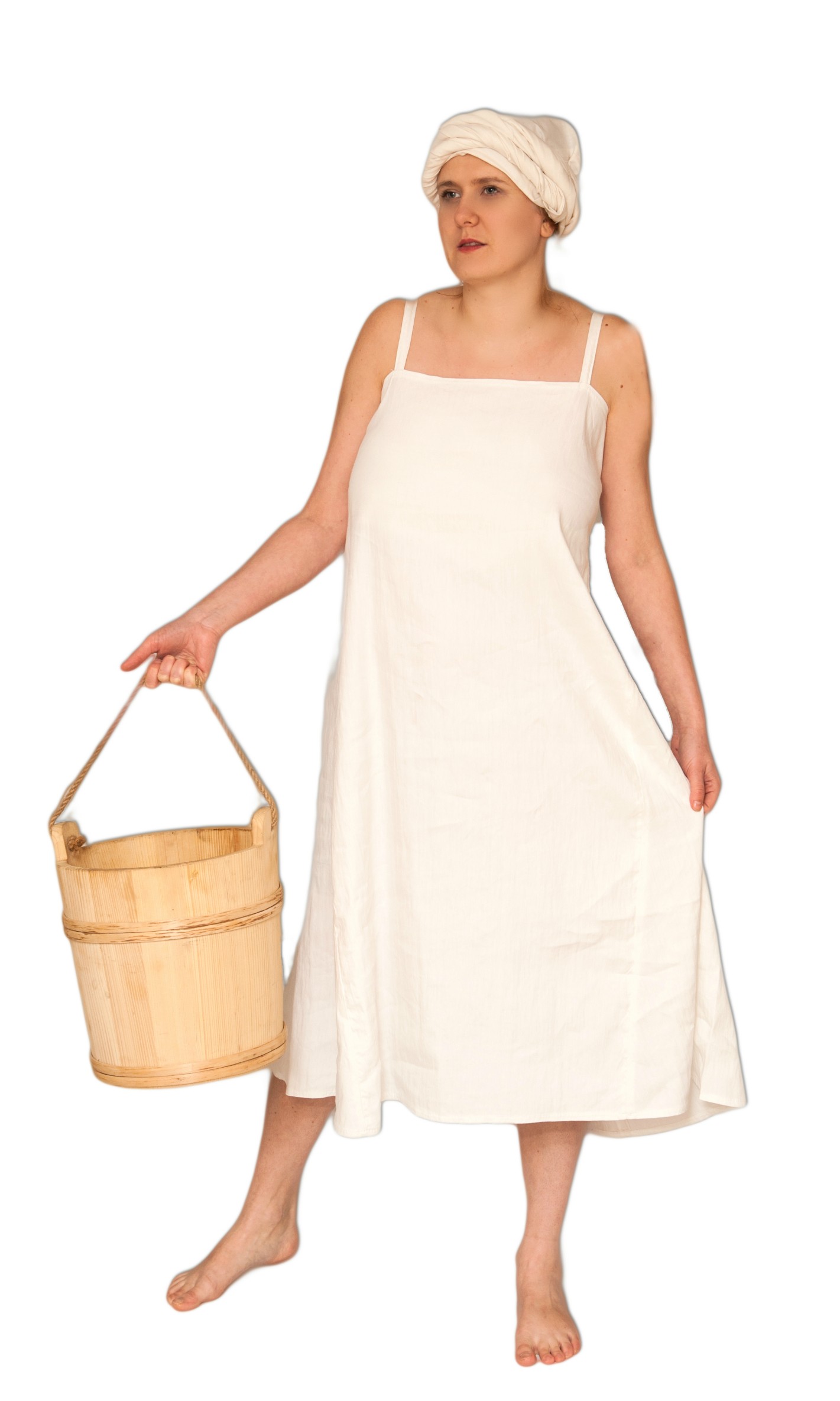 Known since the early Middle Ages, the chemise was made of bleached or natural linen. Medieval undergarments were easy to wash and protected more expensive outerwear from staining. The cut was simple: long sleeves, often without a waistband, and ankle-length or shorter. The strapped version is tighter than the long-sleeved version, but it is still not tight-fitting. Medieval undergarments from the late 15th century are mentioned in many historical sources.