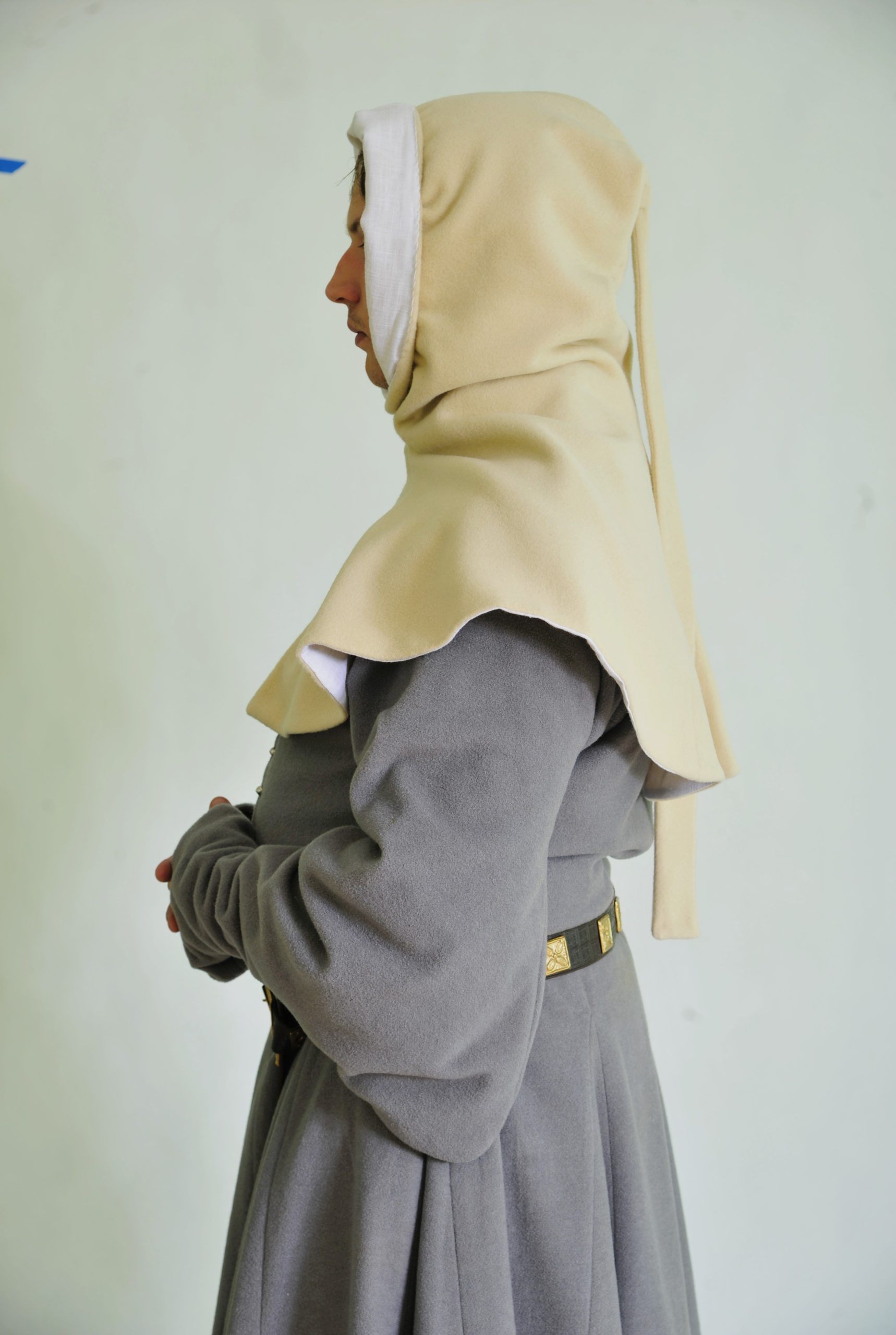 Medieval headgear – a hood popular in the High Middle Ages, with a ruff that falls slightly over the shoulders and a not-too-long tail.