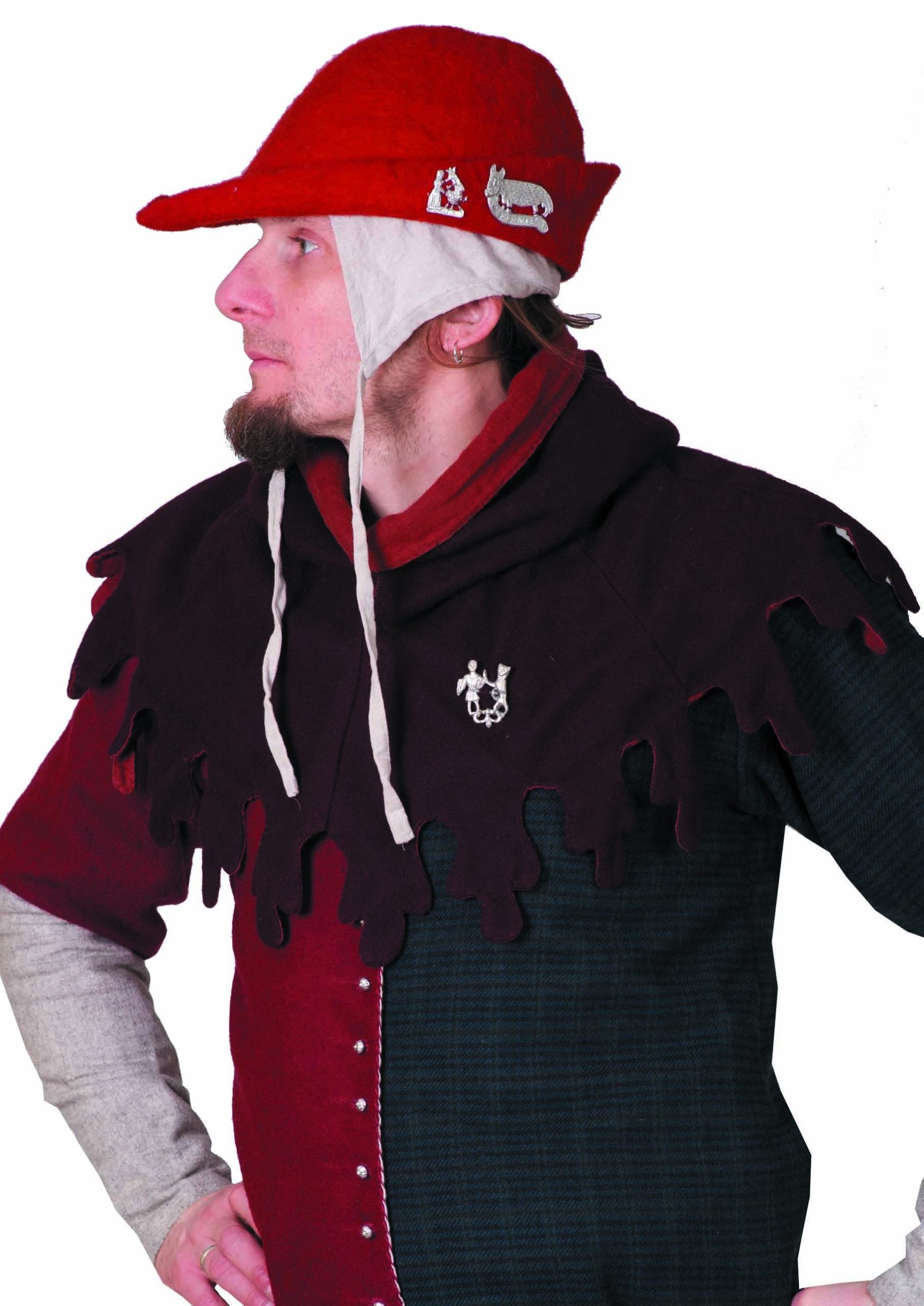 Medieval headgear – a hood with a large ruff covering the shoulders, with a cutout. Worn by men in iconography.