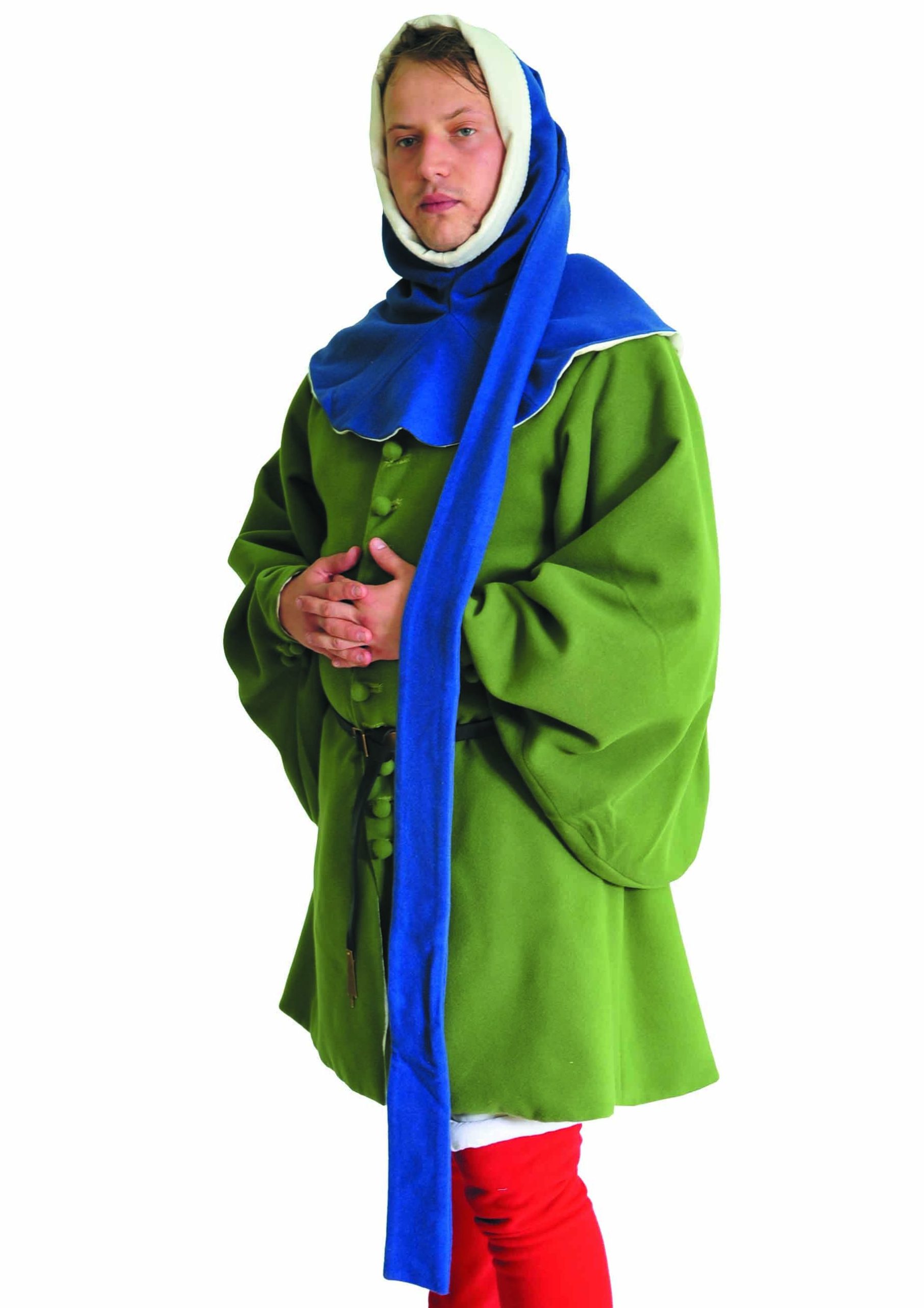 Medieval hood was most often made of wool, ensuring comfort and durability. Over time, the hood took on various forms – from simple, short models to ornately decorated ones with a long tail (liripipe), which became a fashionable accent in the 14th and 15th centuries. In some regions, it was also worn under a helmet, making it a protective element of military attire.