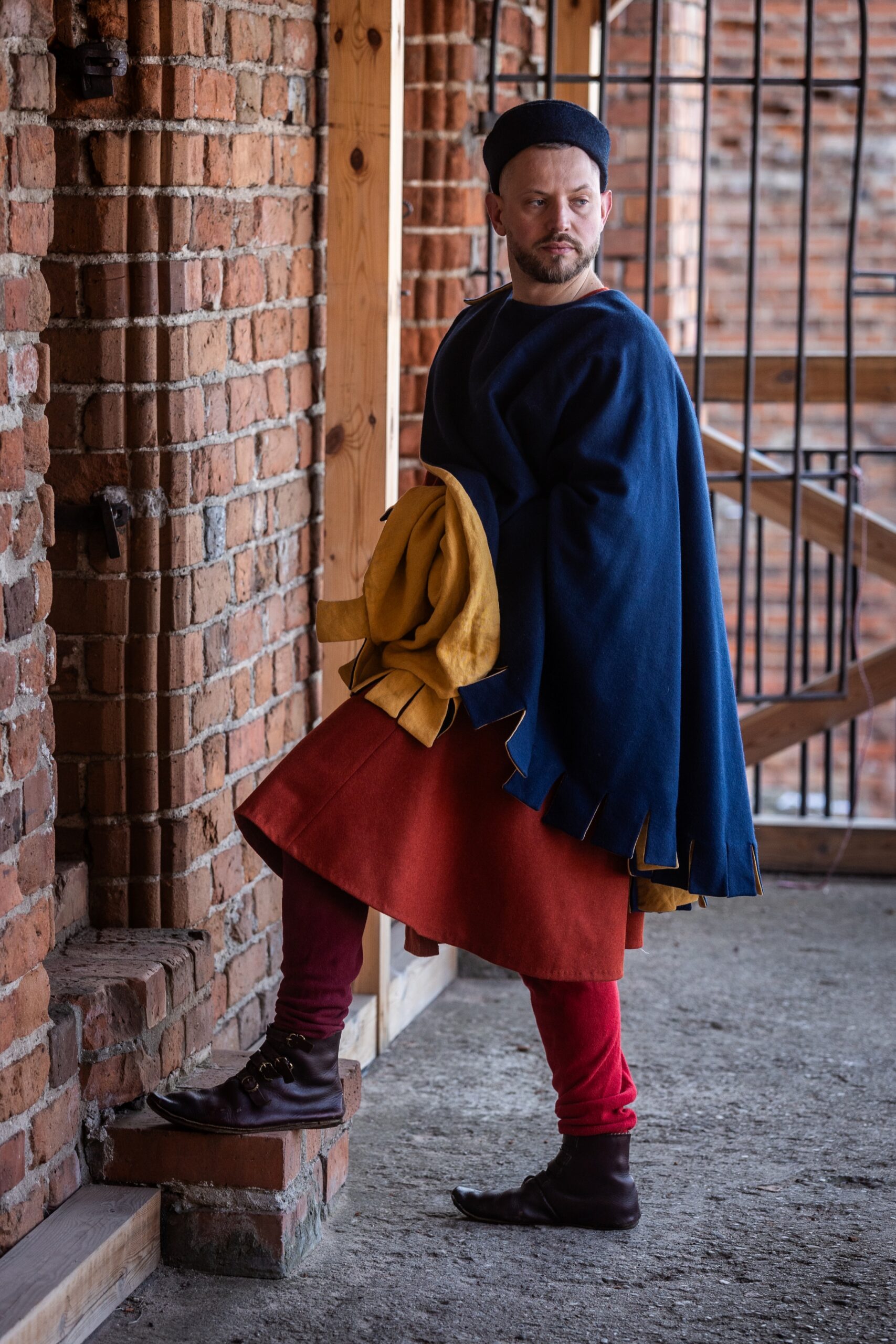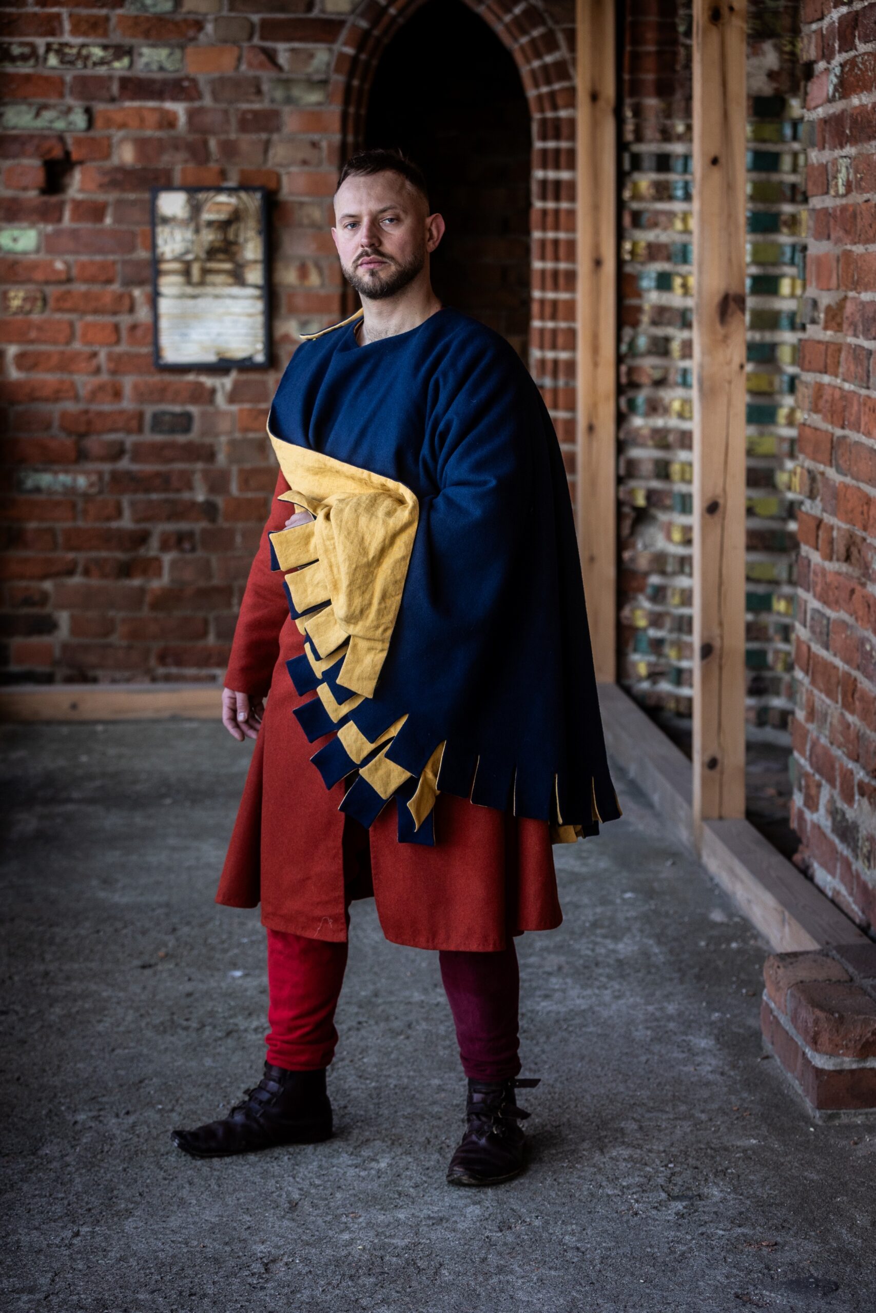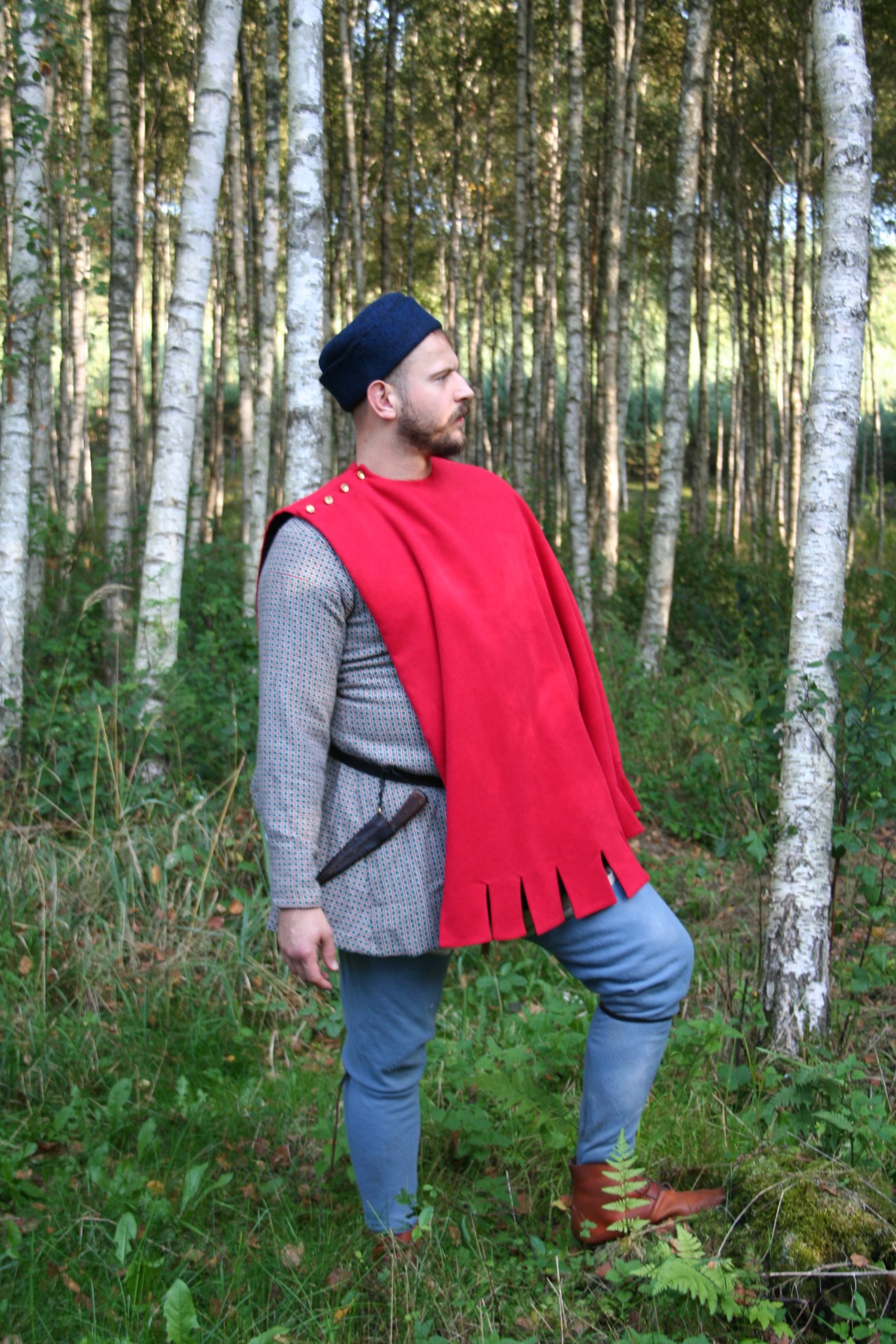 Medieval cloaks were very practical garments worn by all social groups. They were useful in every possible situation – protecting against wind, cold, and rain, while traveling, on pilgrimage, in the forest, or in the city. Perfect for covering up at night. Fastened with brooches, clasps, cords, or buttons.