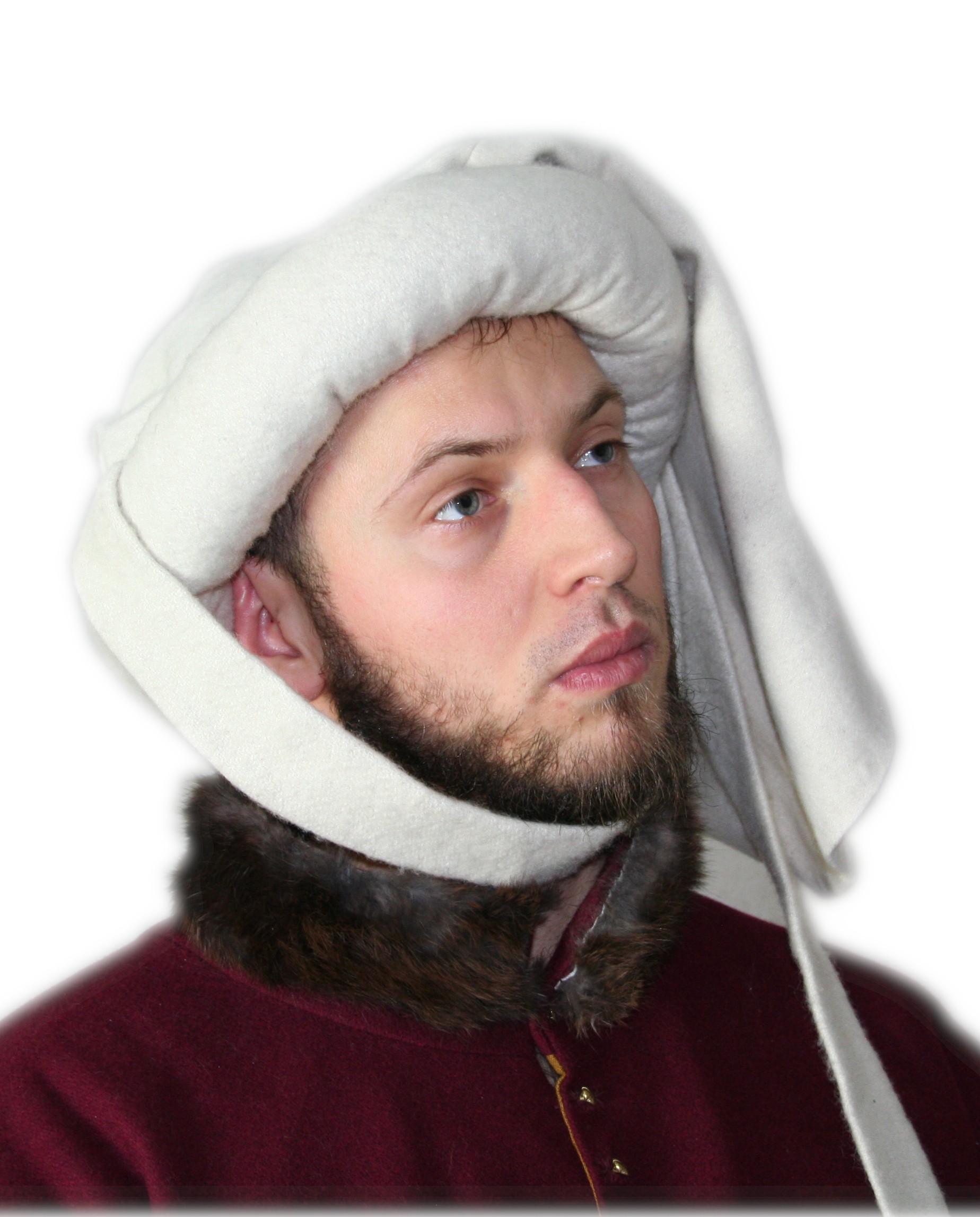 The chaperon was a popular headgear in medieval Europe from the 13th to the 15th centuries. Initially a simple hood with a hood or long tail (known as a cornette), it evolved over time into a decorative garment. The chaperon served a practical purpose – protecting against wind and rain – but also a decorative one: richly decorated versions became a symbol of social status and elegance.