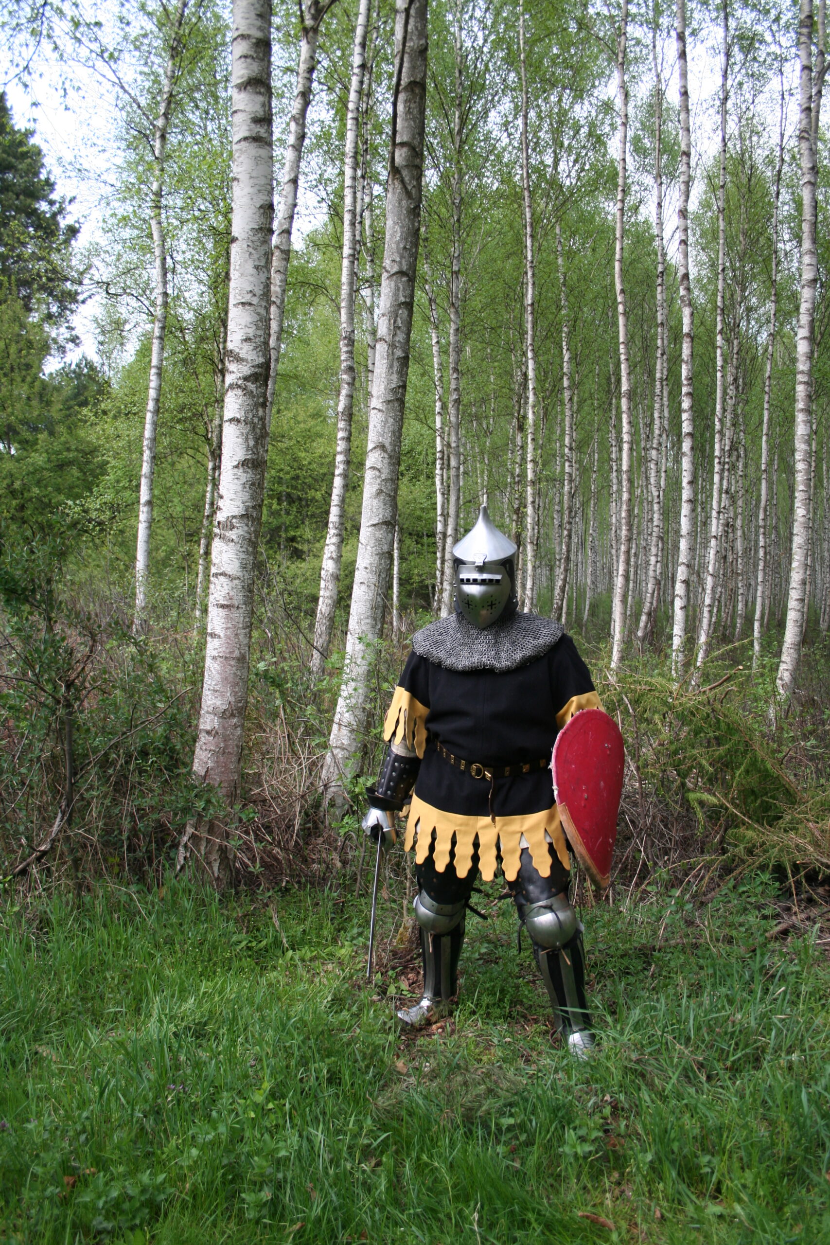 Surcoats, also known as battle robes, emerged in the 12th century as lightweight garments worn over mail shirts. Initially, they served a practical purpose – protecting the metal from sun and rain and preventing the knight from overheating. Over time, they began to take on ceremonial significance: they were decorated with coats of arms, embroidery, and colorful fabrics, making them an important element of identification on the battlefield.