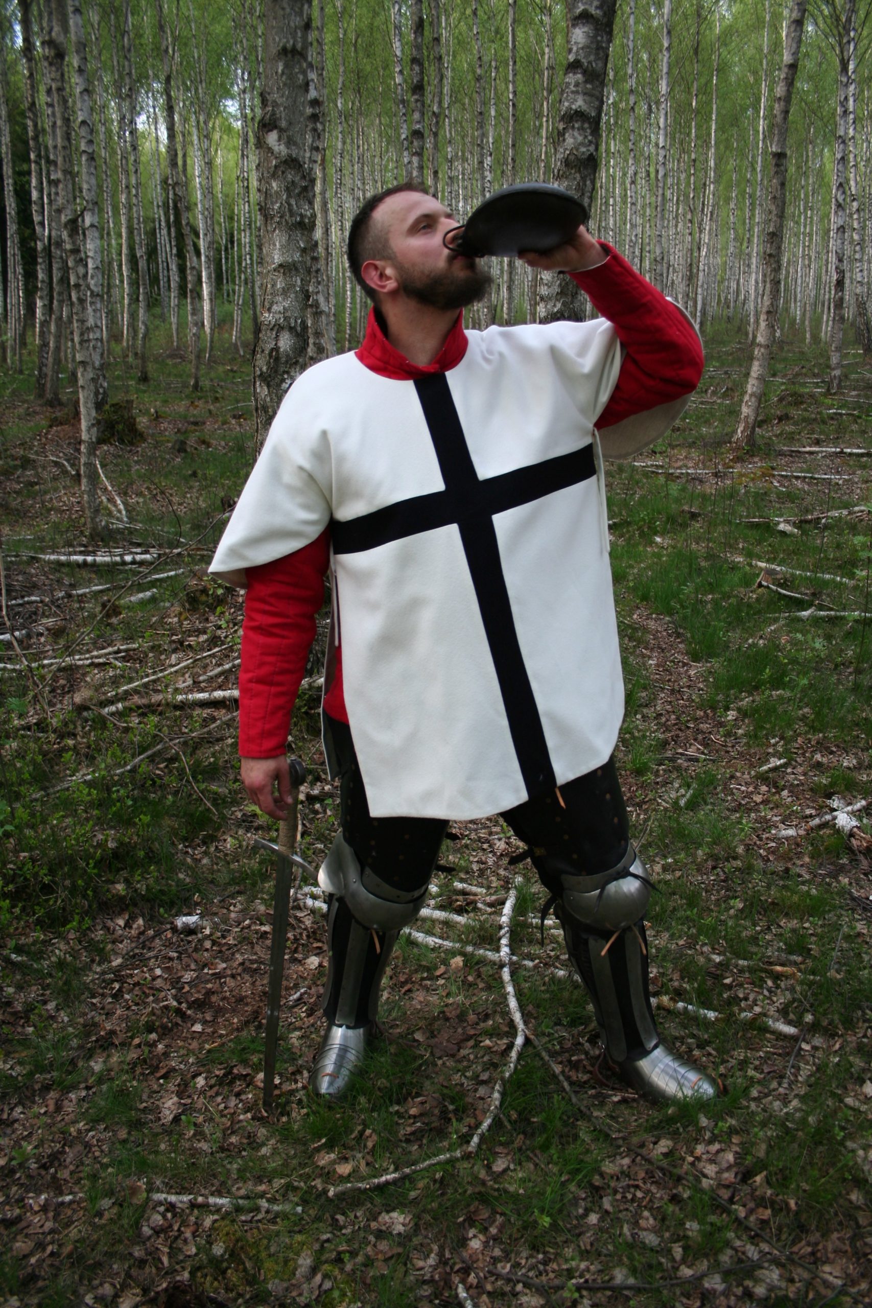 Surcoats, also known as battle robes, emerged in the 12th century as lightweight garments worn over mail shirts. Initially, they served a practical purpose – protecting the metal from sun and rain and preventing the knight from overheating. Over time, they began to take on ceremonial significance: they were decorated with coats of arms, embroidery, and colorful fabrics, making them an important element of identification on the battlefield.